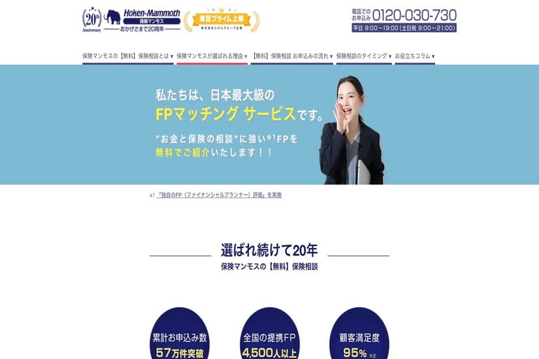 保険マンモスは、相談者とファイナンシャルプランナーのマッチングサービスで、各担当者に品質水準を設けていて、安心して相談することができます。